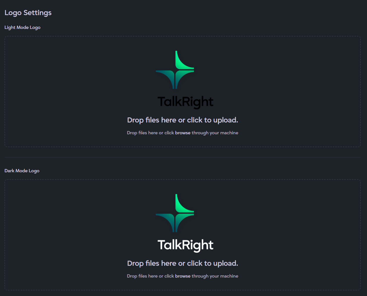 - Upload separate logos for Light Mode and Dark Mode.