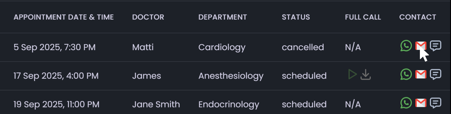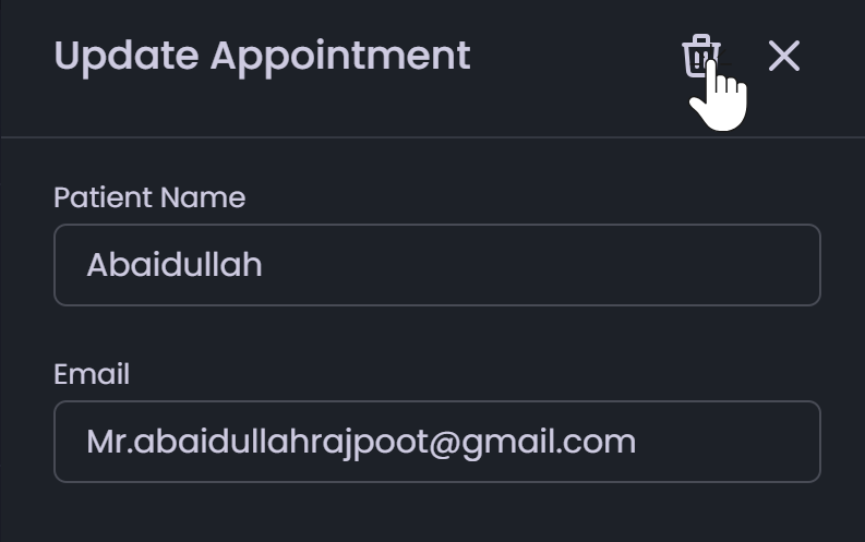 - arrow_forwardDelete (Trash Icon): Permanently remove the appointment.
