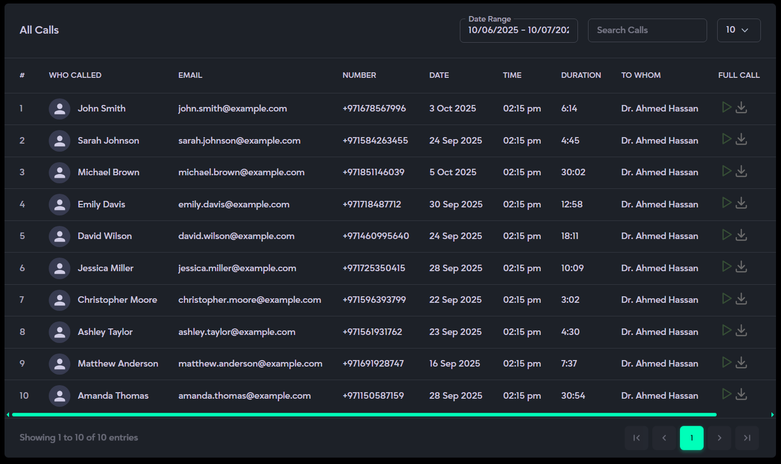 - Includes a dropdown filter that allows you to view and compare call data for any specific month as needed.