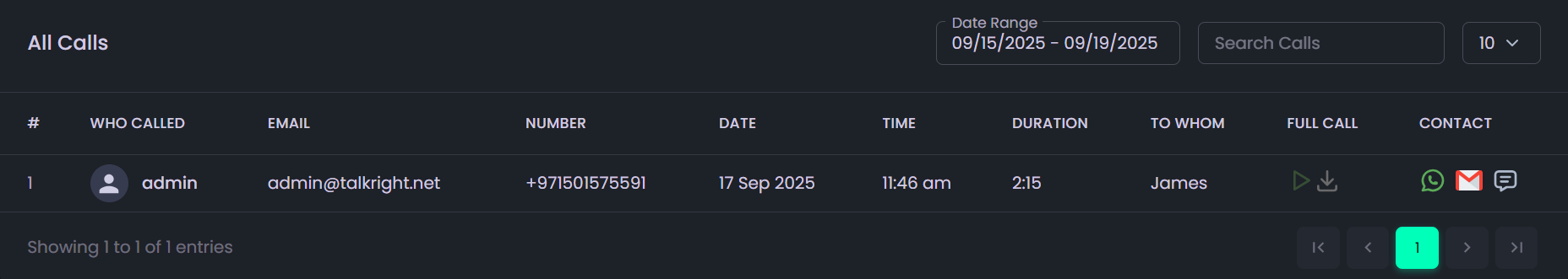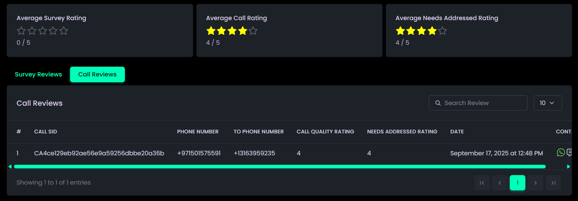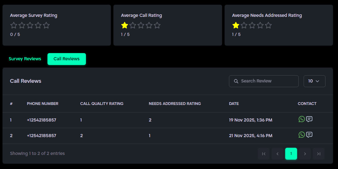 - Call Record (displayed if available, otherwise shown as N/A).