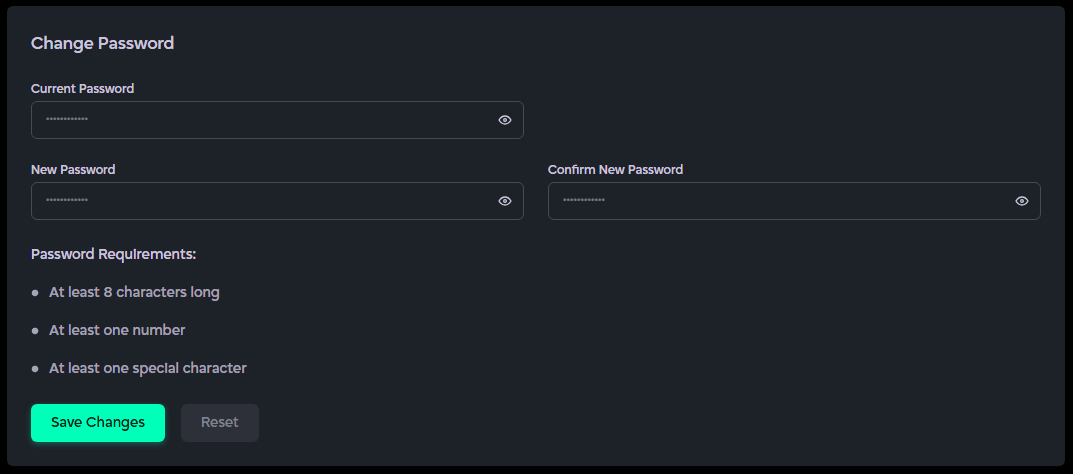 - Save Changes: Click Save Changes to update your password. Your account will now be secured with the new password.