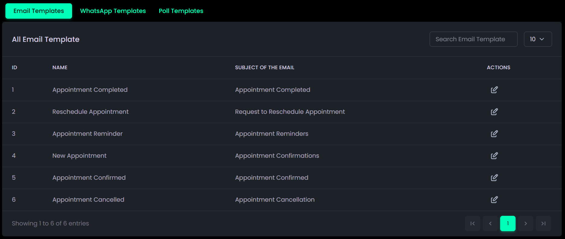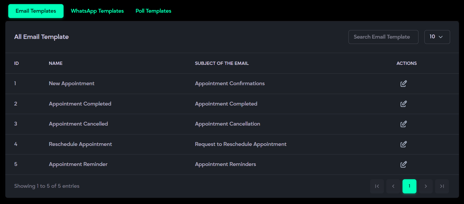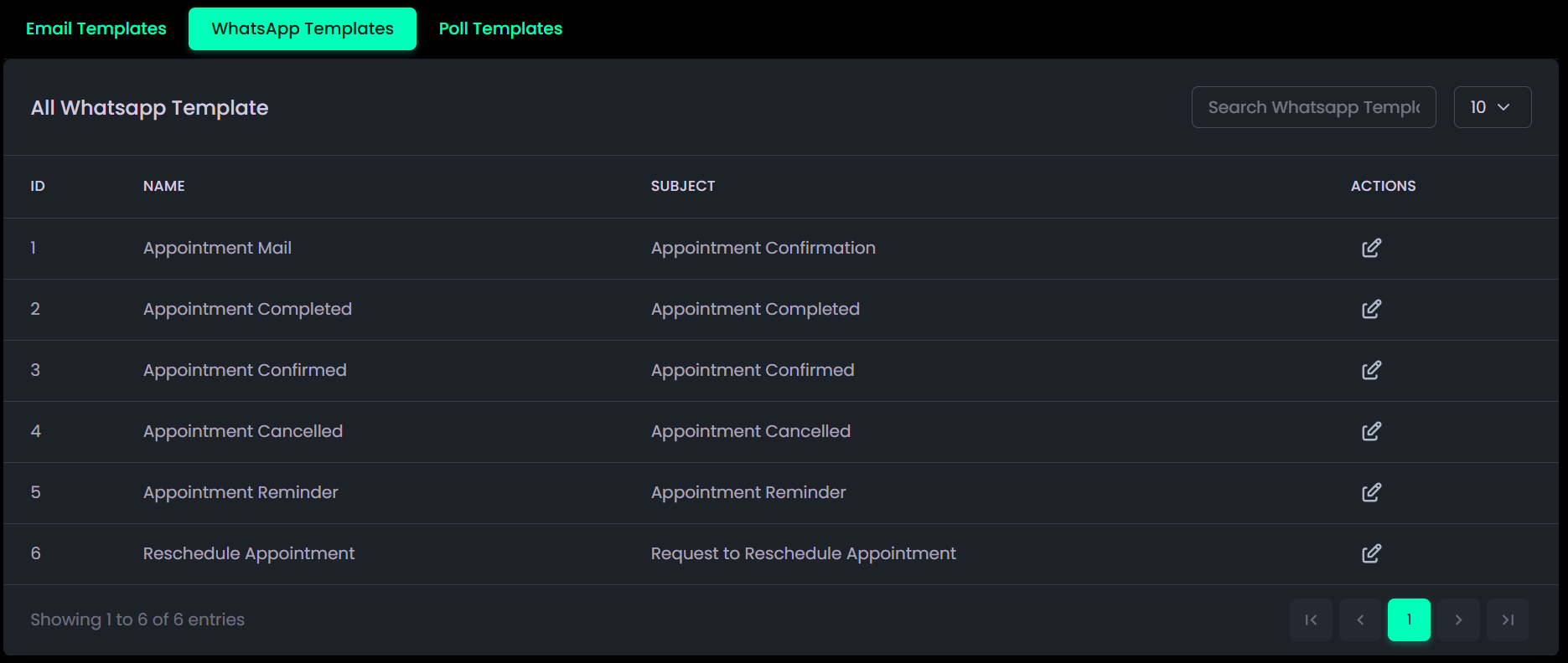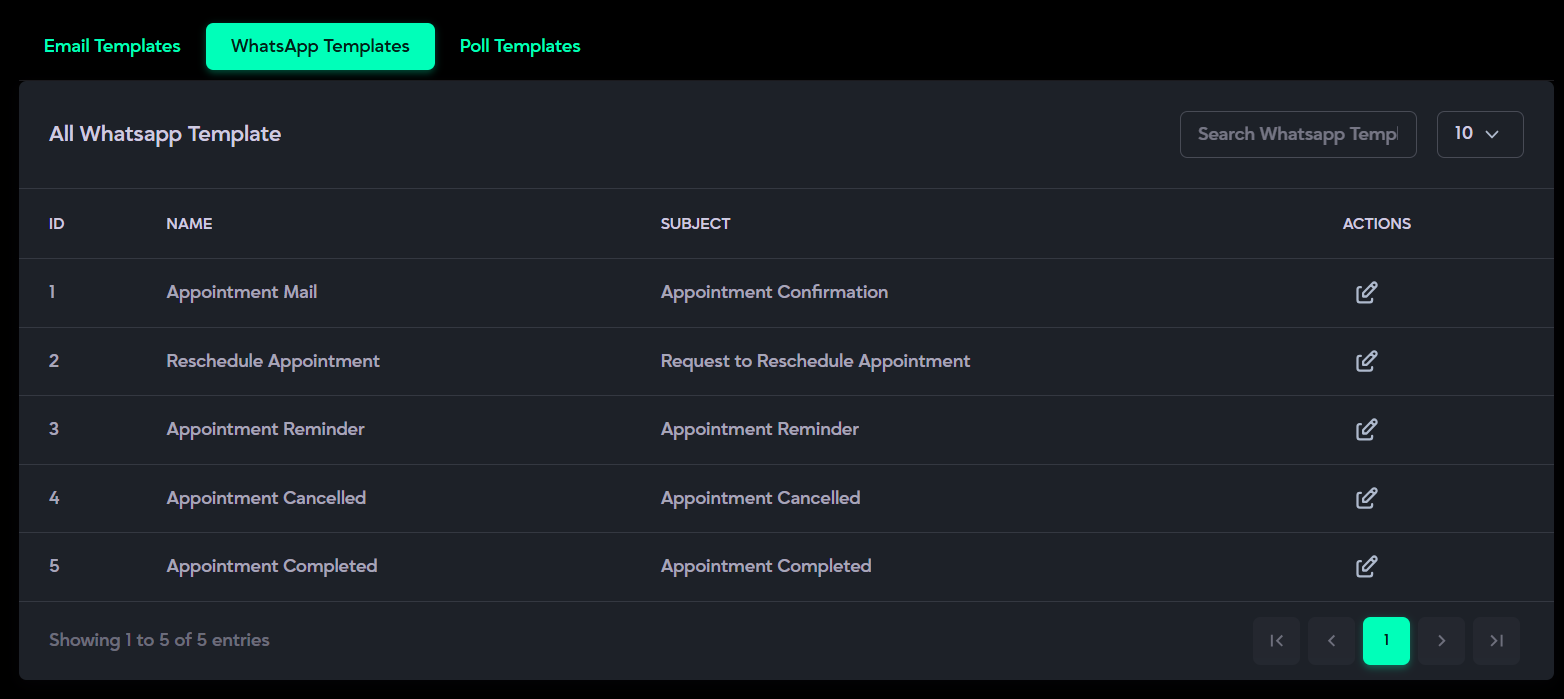 - Templates Management: Allows editing and configuring Email, WhatsApp, and Poll templates for communication.