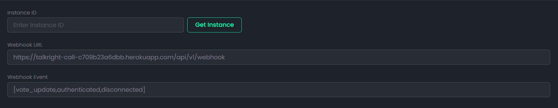 - After clicking Get Instance ID, the required WhatsApp API credentials (Instance ID, Webhook URL, Webhook Event) will be generated.