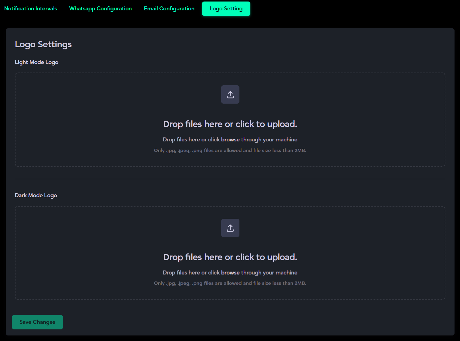 - Click Save Changes to apply your logos across the system interface.