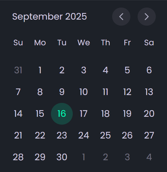 - Use Navigation Controls(left/right arrows or month title) to switch between months.