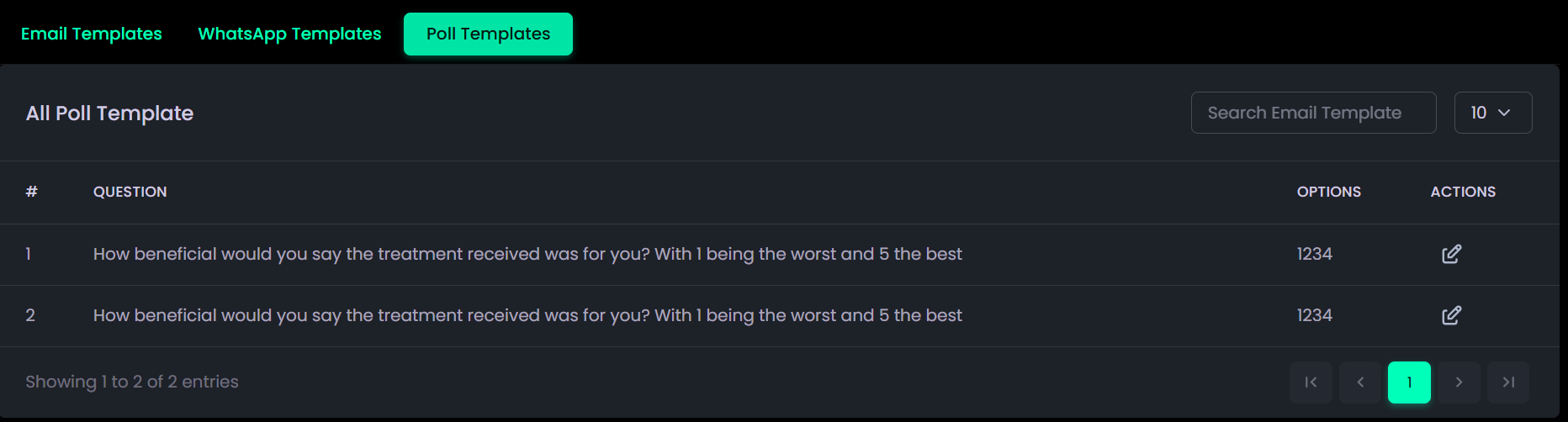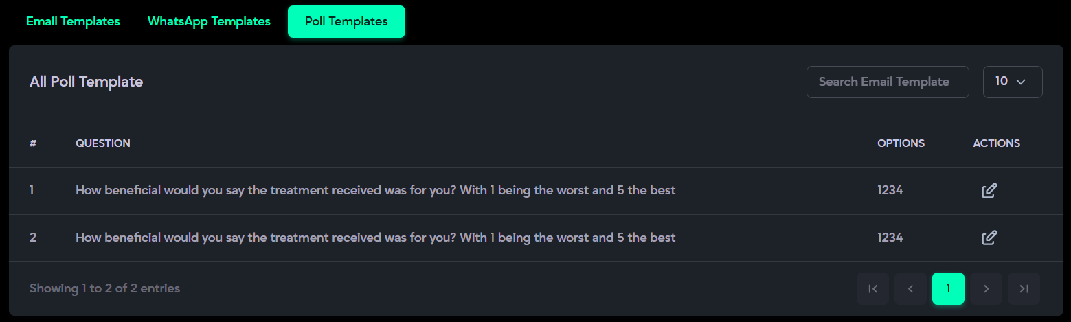 - Click the Edit icon under Actions to modify a poll’s question or answer options.