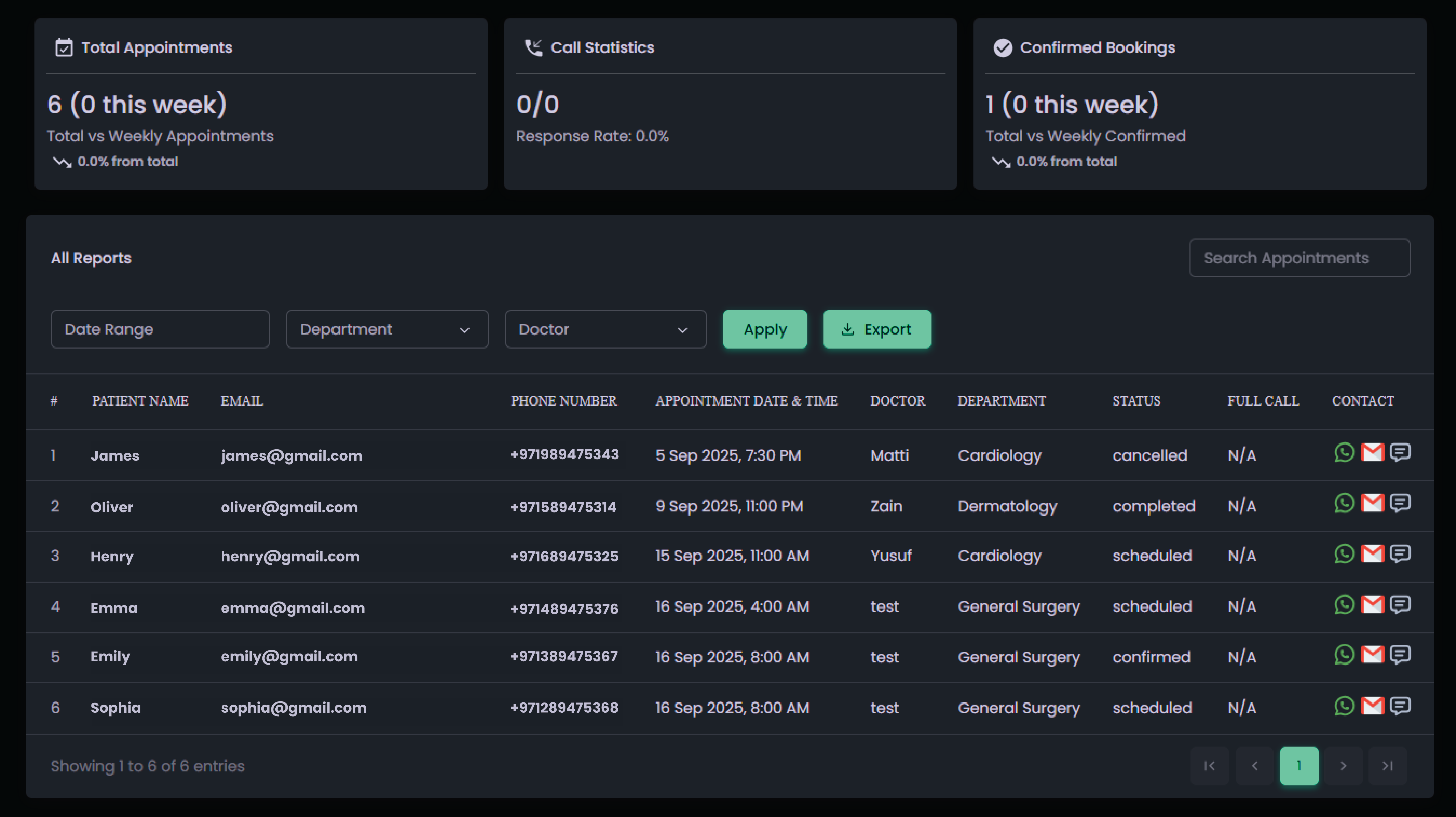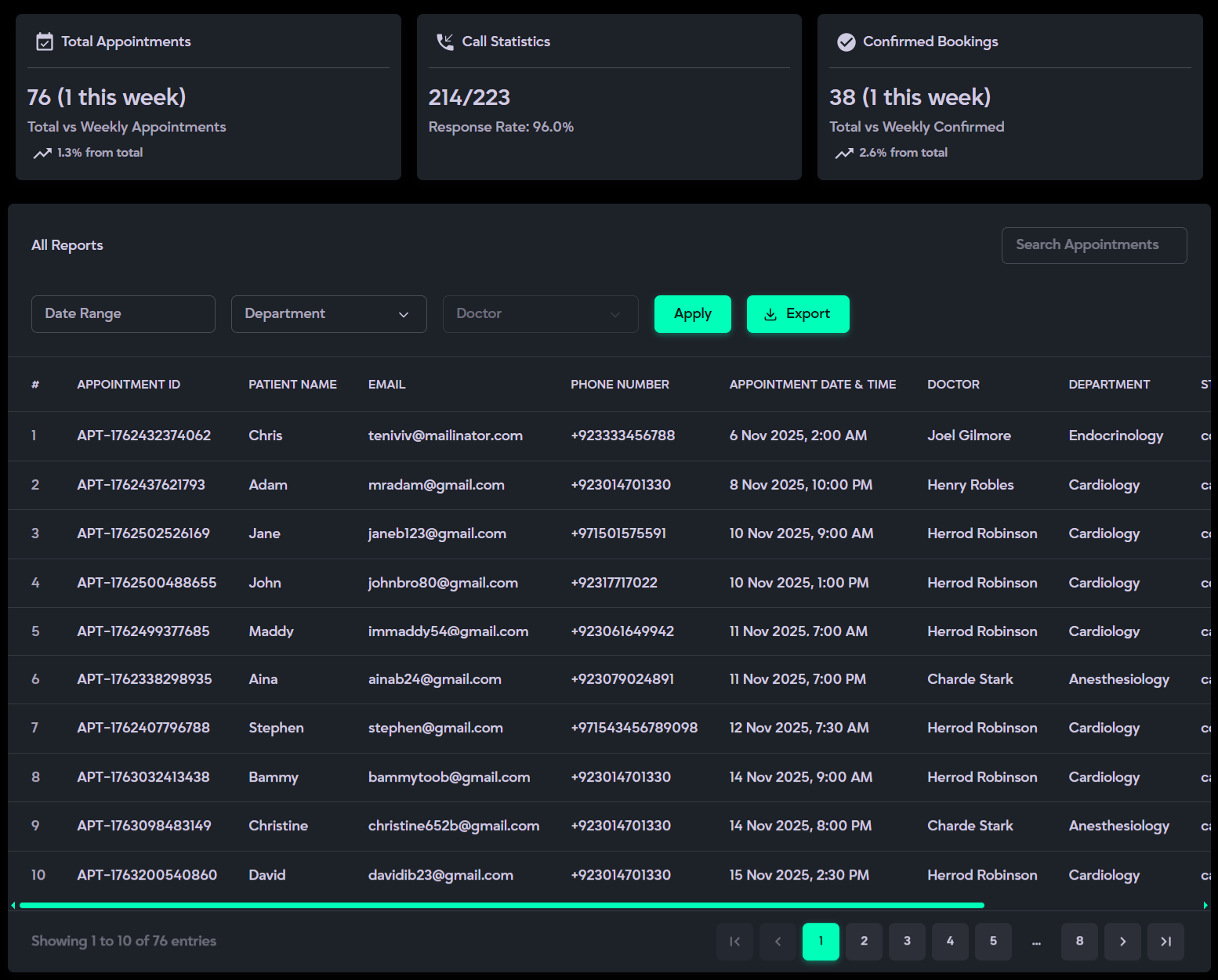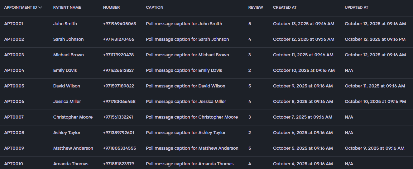 - Appointment Status (e.g., Confirmed, Completed, or Canceled).
