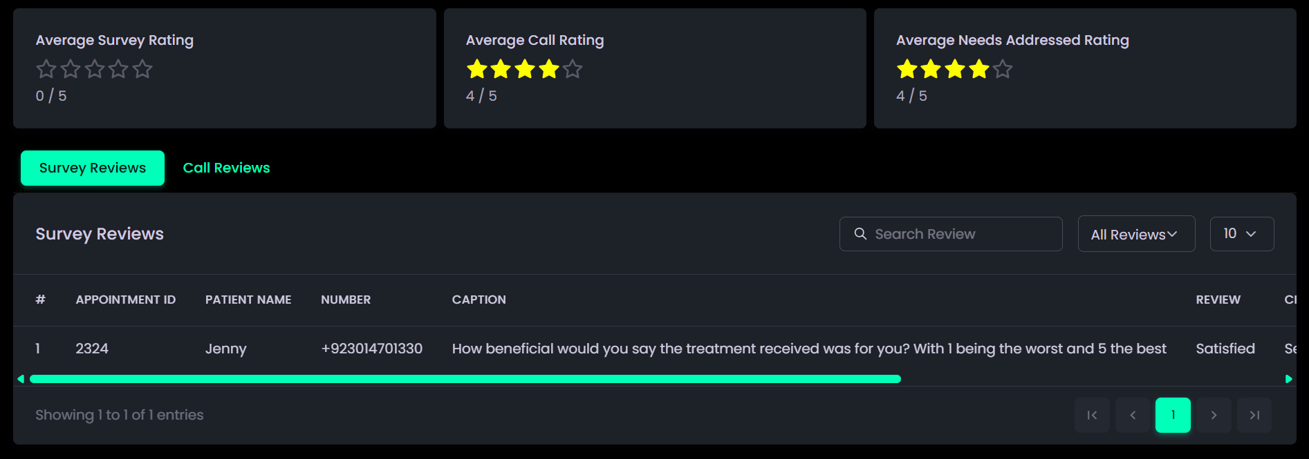 - Reviews: Contains patient and caller feedback, helping assess satisfaction and service quality.