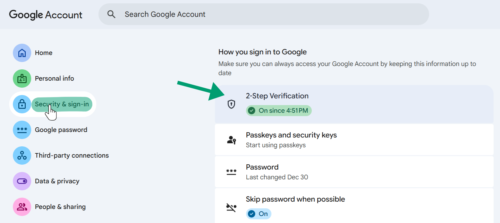 - Go to Security and enable 2-Step Verification.