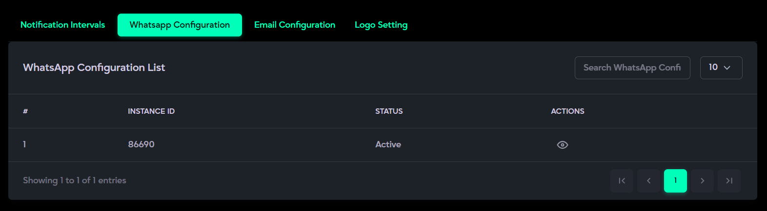- Open the WhatsApp Configuration subsection from System Settings.