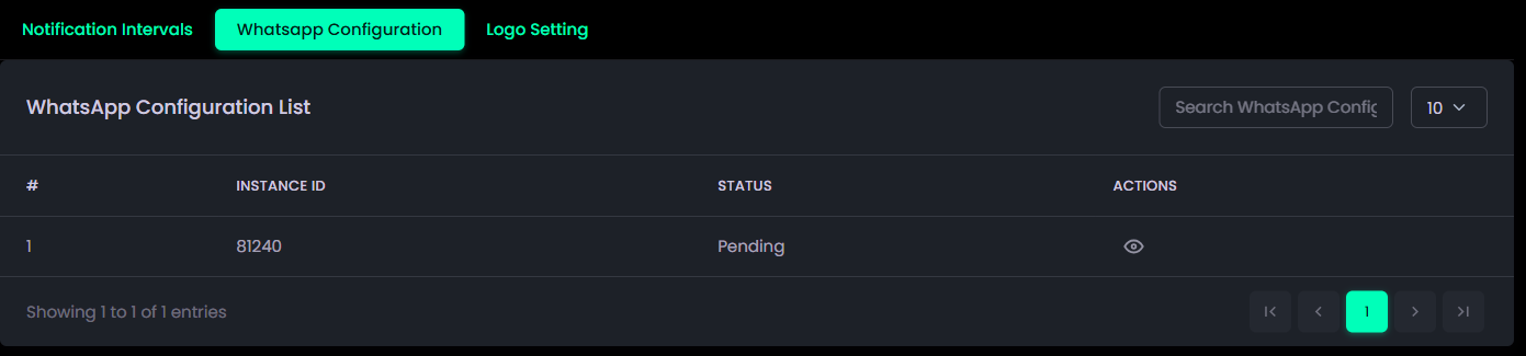 - Requires entering WhatsApp API credentials such asInstance ID, Webhook URL, and Webhook Event to activate WhatsApp-based reminders and notifications.
